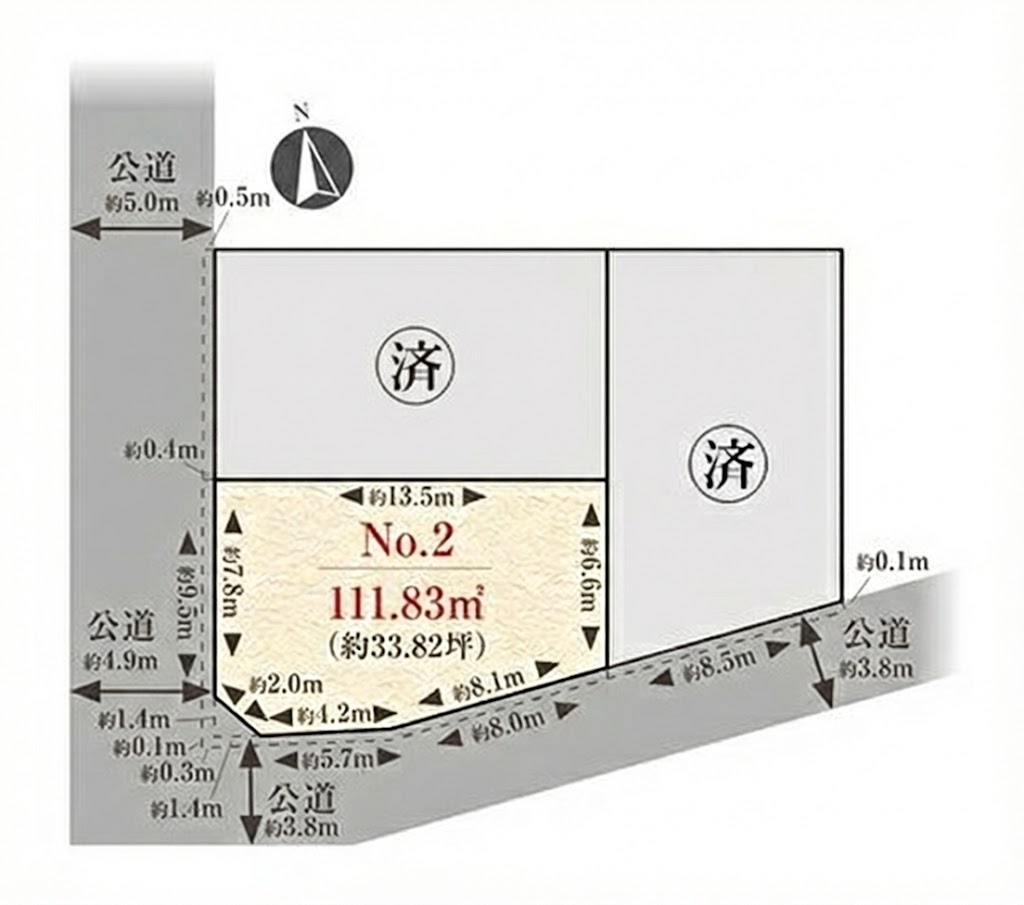 ※本物件敷地の西側は、建築基準法第42条2項道路に基づき、道路境界線後退 (セットバック)をしております。